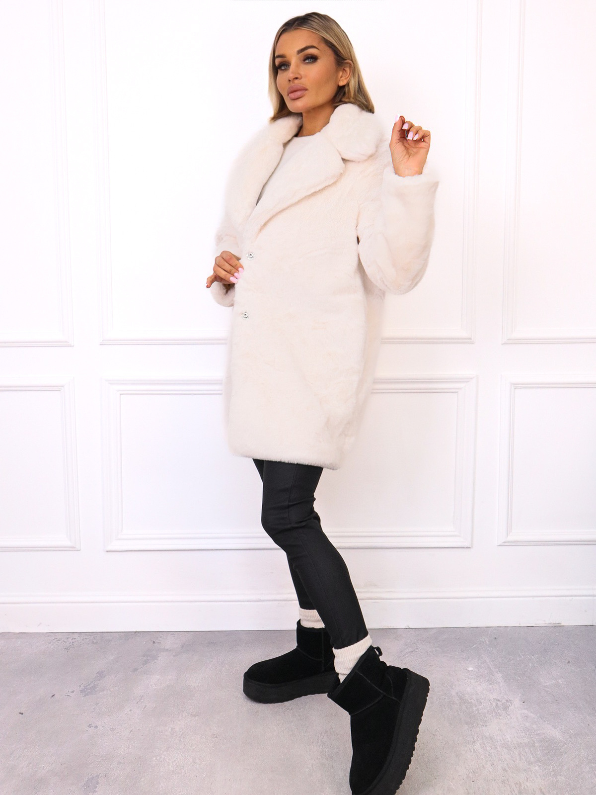 PŁASZCZ FUTRZANY Z KOŁNIERZEM- BIAŁY