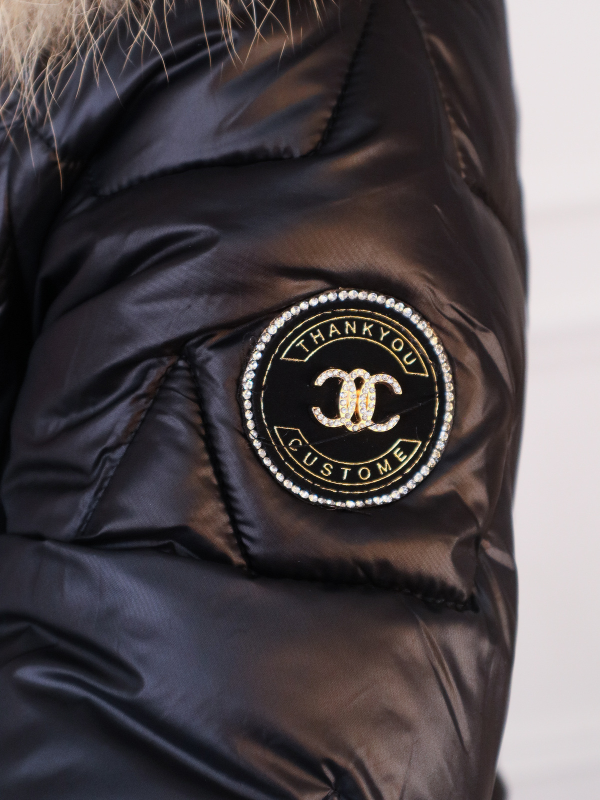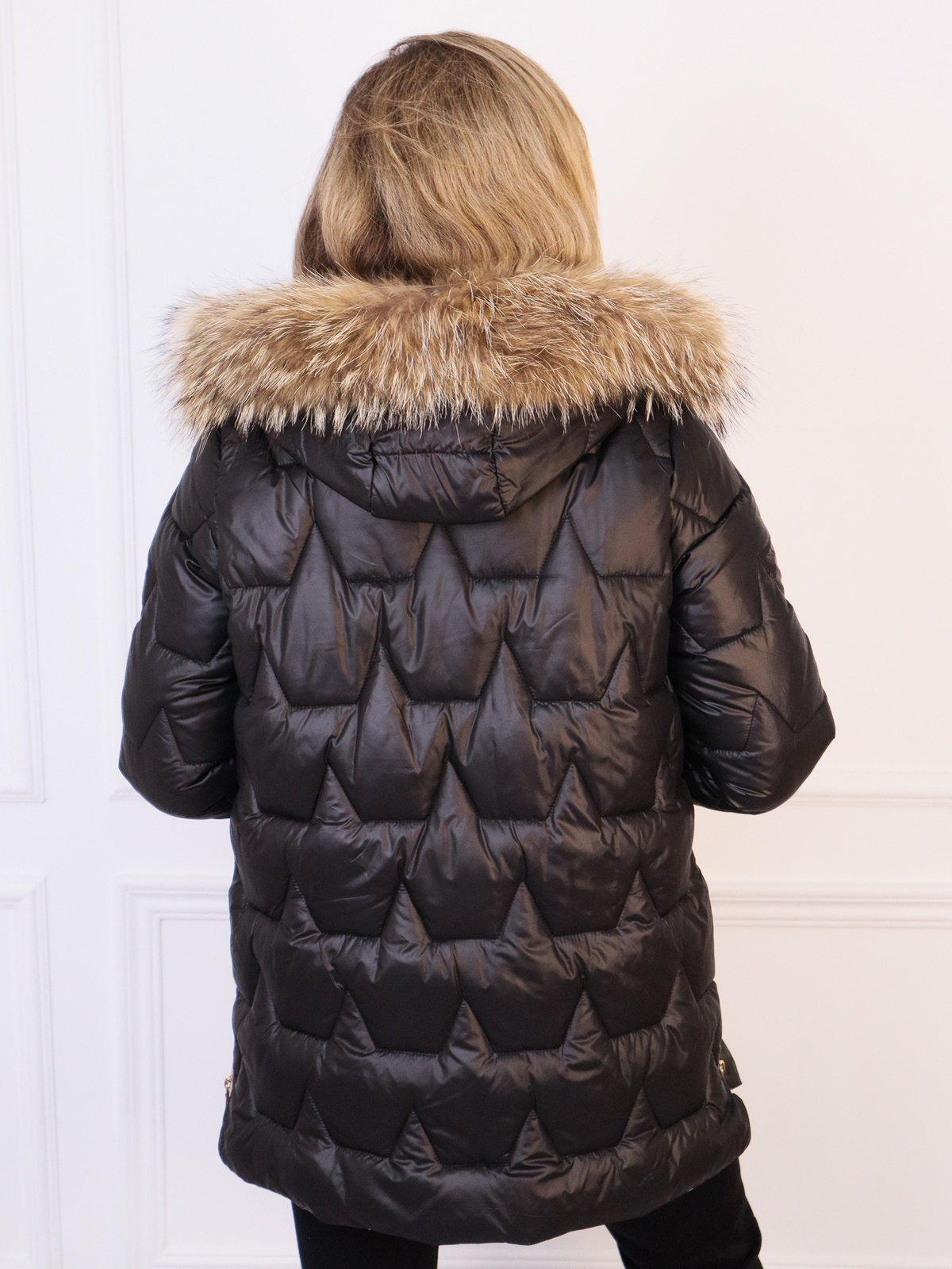 KURTKA Z FUTERKIEM PIKOWANA Z ZAMKAMI PO BOKACH- CZARNA