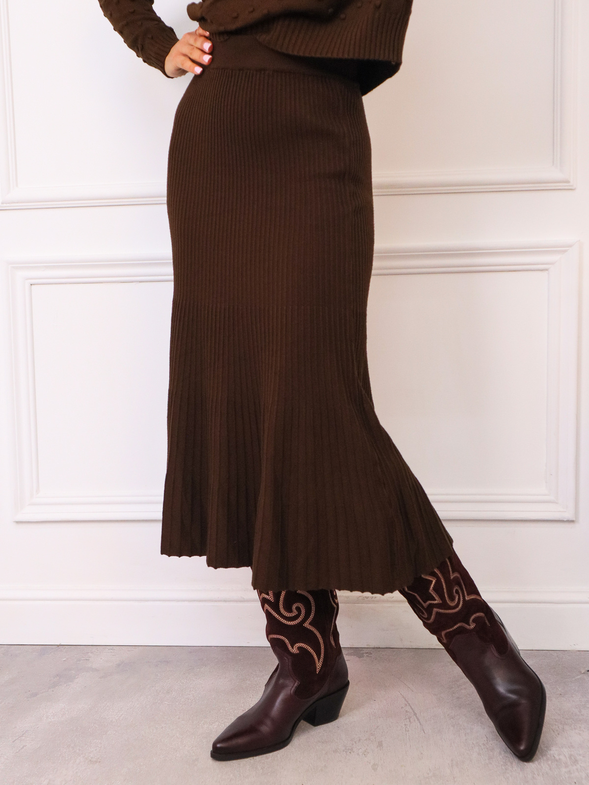 SPÓDNICA PRĄŻKOWANA Z DZIANINY- CZEKOLADOWA