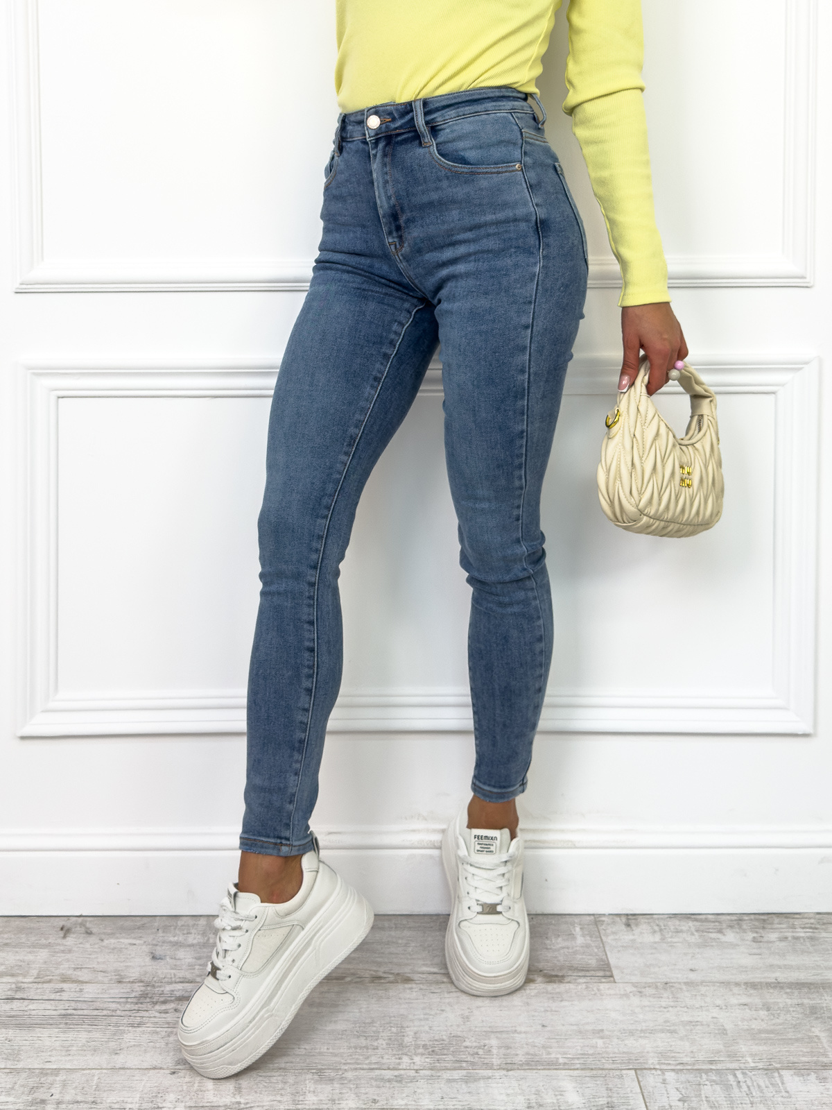 Spodnie jeansowe skinny z wysokim stanem. Miękki i elastyczny materiał