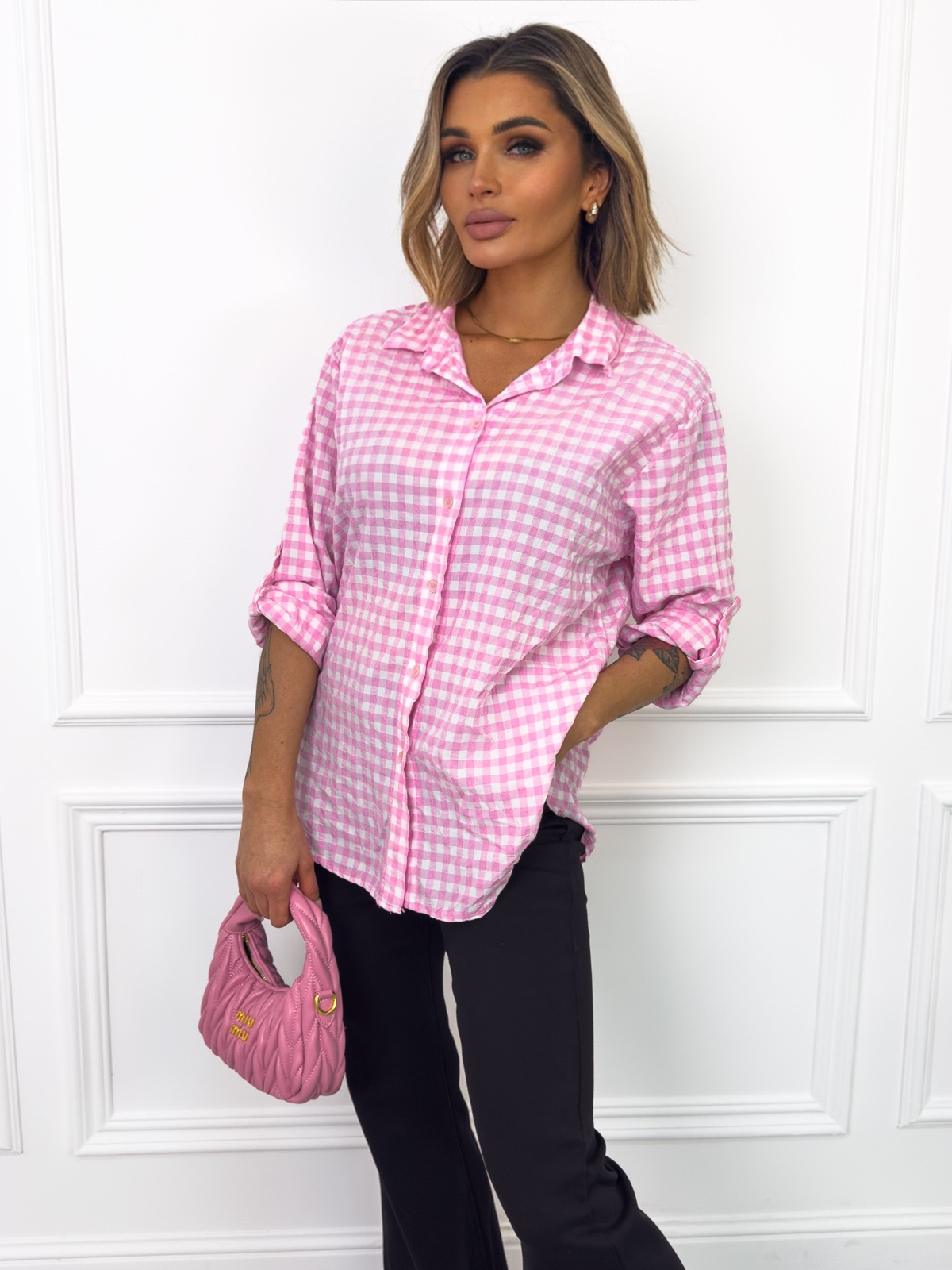 Koszula w kratę zapinana na guziki.