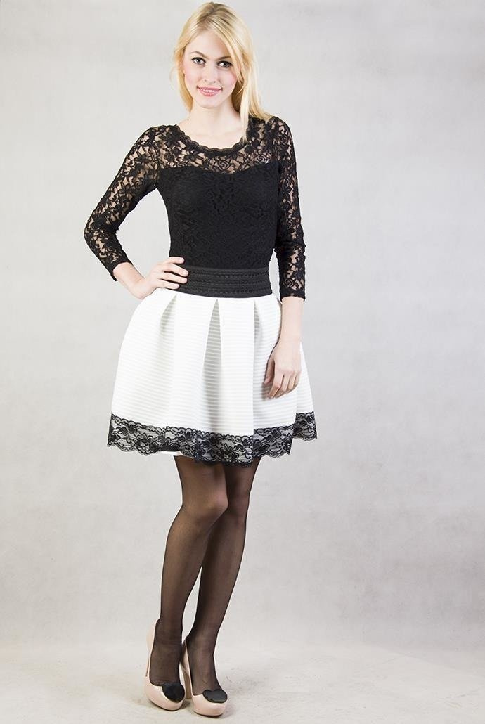 Biała spódnica bombka ściągana gumką w pasie, na dole obszyta koronką.