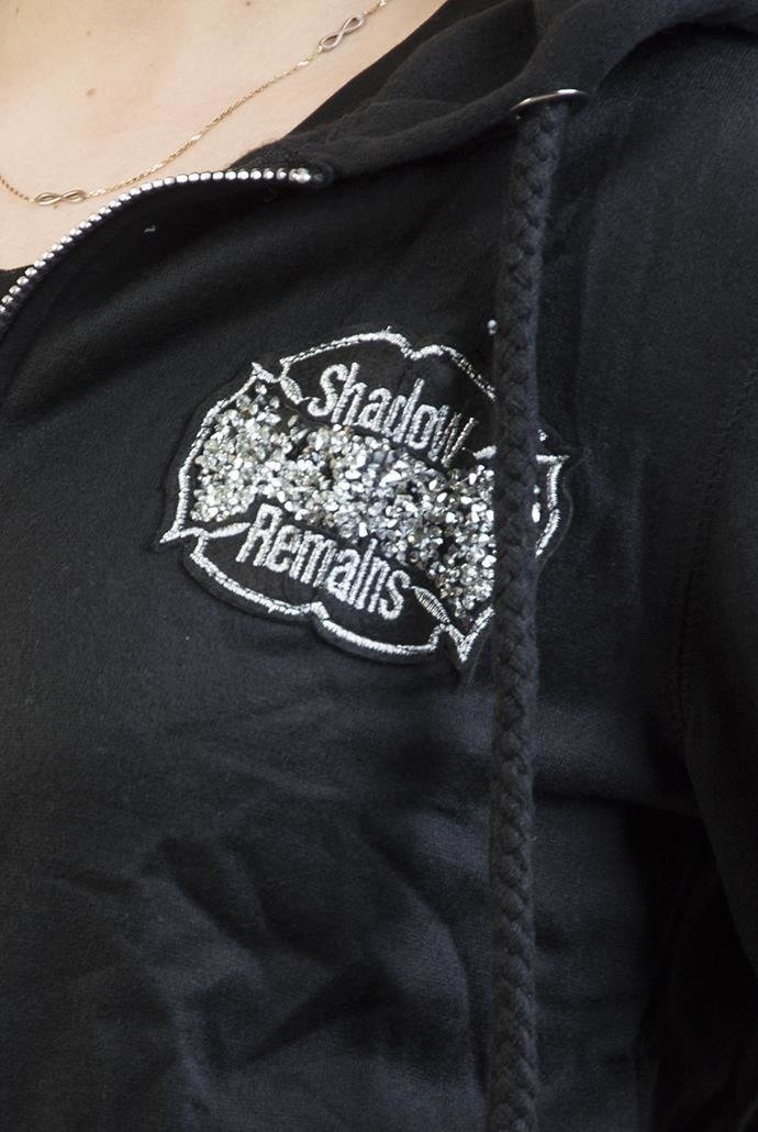 Czarna bluza z kapturem i naszywkami, zapinana na zamek