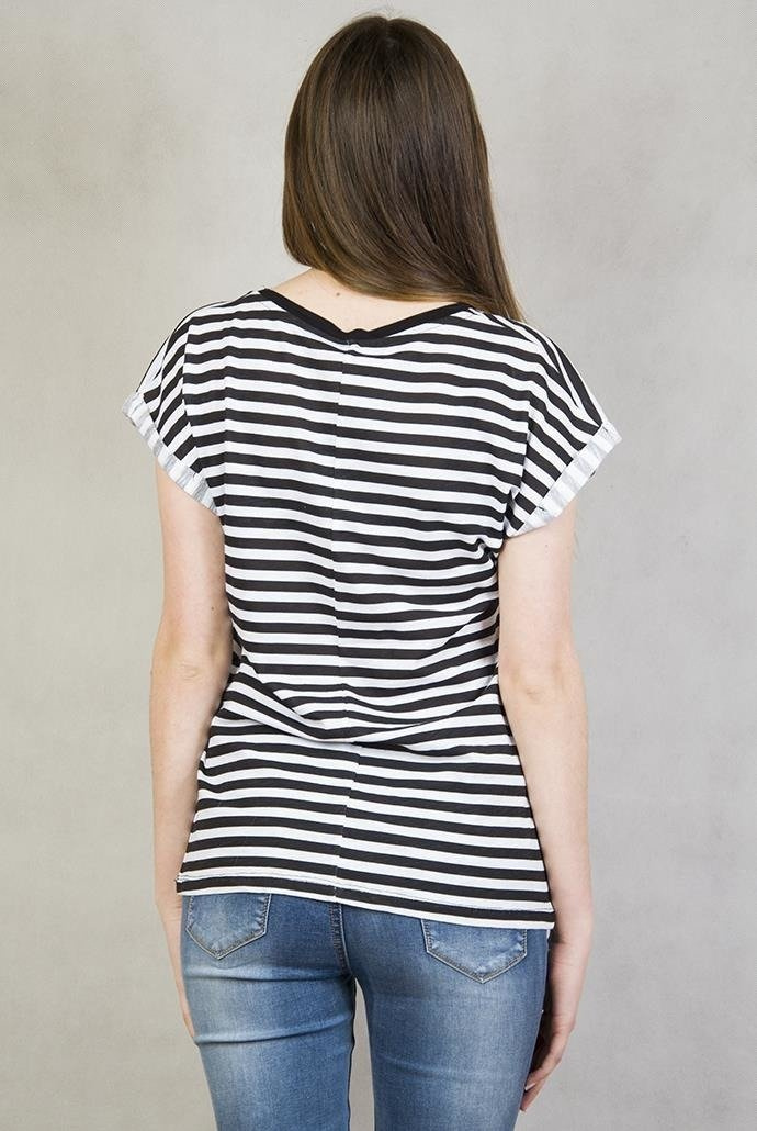 Biała bluzka w czarne paski z napisem : N1 HIGH GLAM NEW YORKER.