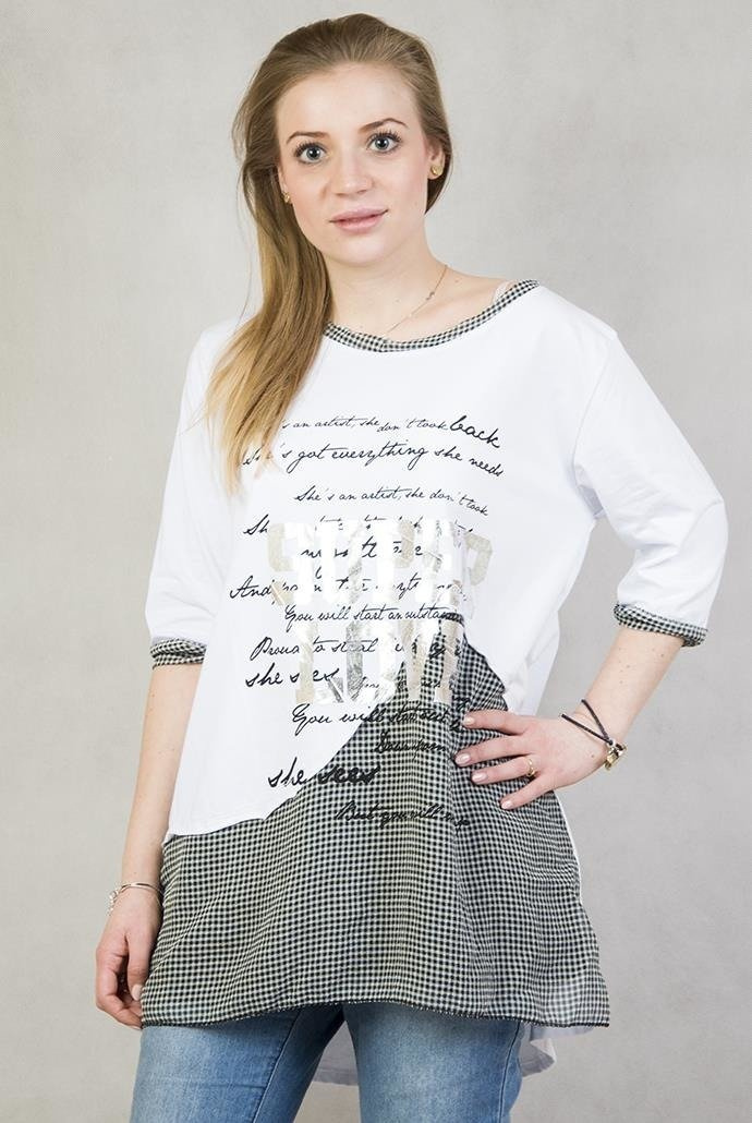 Biała bluzka z elementami w kratę z napisem "SUPER LOVE"