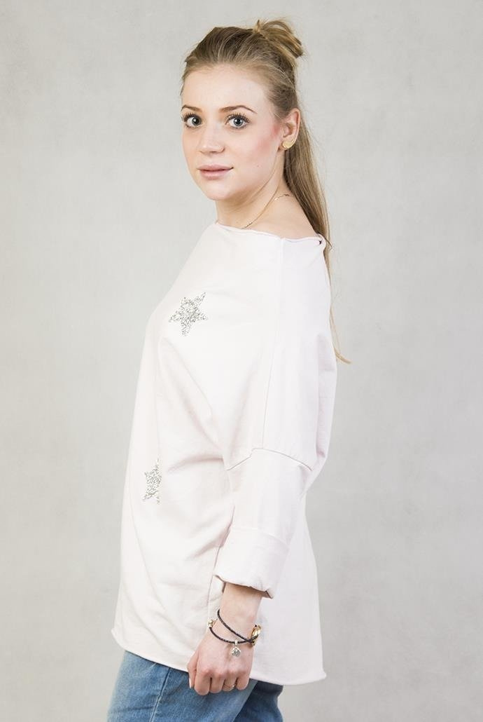 Różowa bluzka z 3 gwiazdkami.