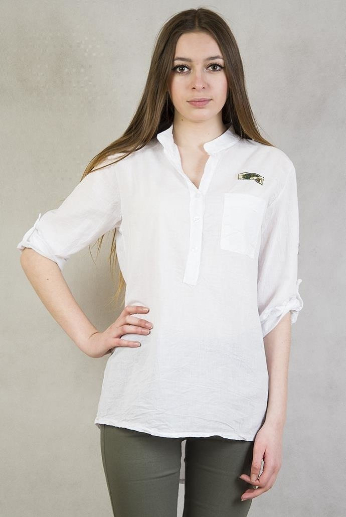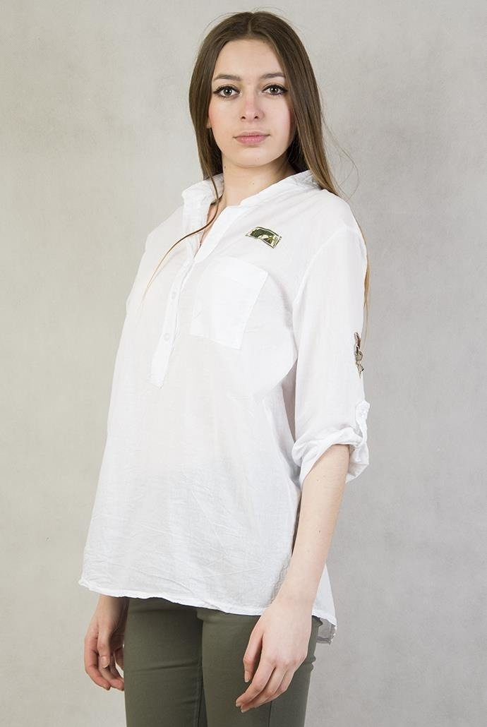 koszula biała w stylu militarnym ,uroku dodają jej naszywki