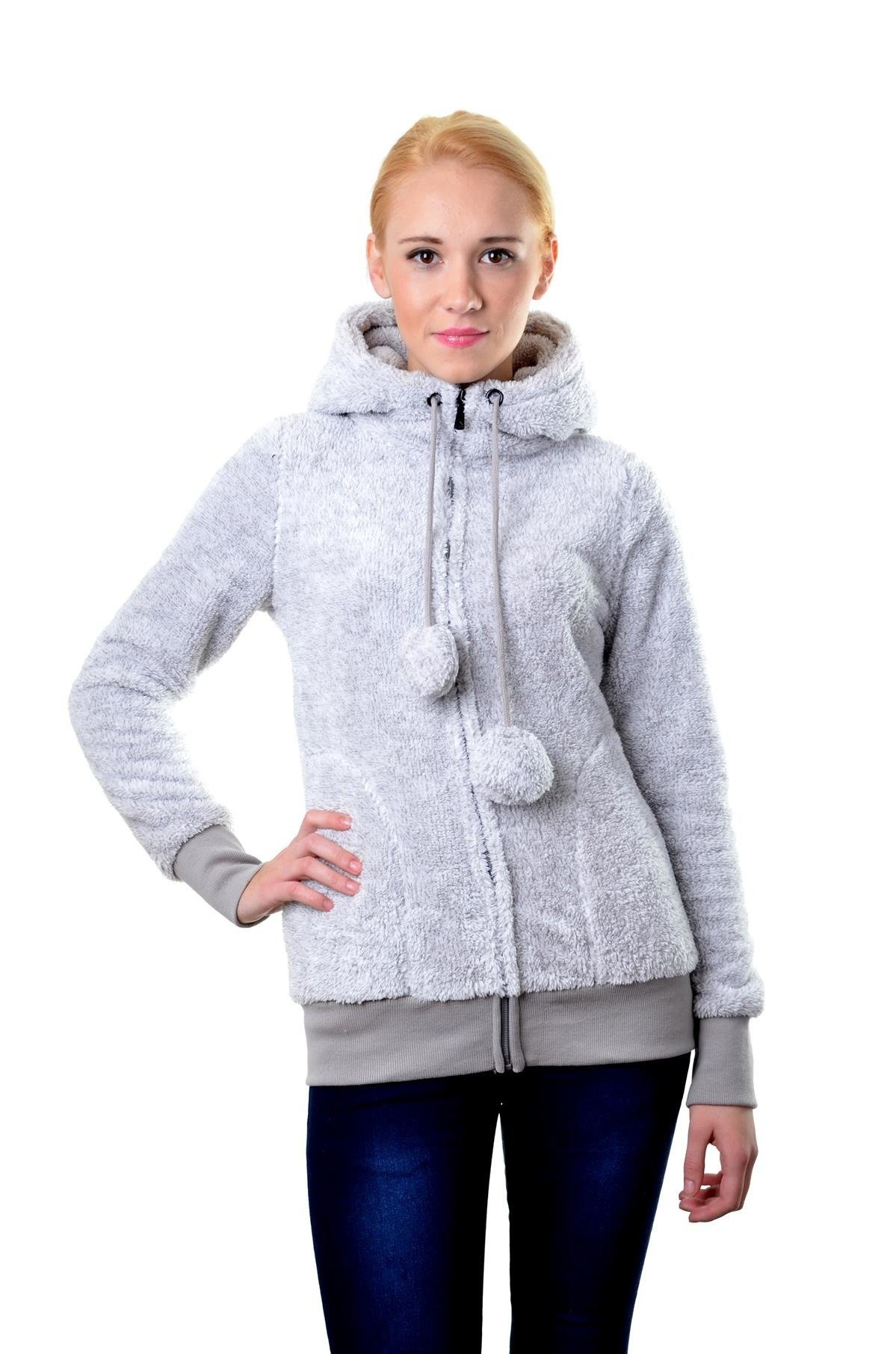 Ciepła i stylowa bluza z kapturem, ściągana sznurkiem wykończonym pomponem, z przodu dwie kieszenie, wykonana z miękkiego pluszowego materiału.