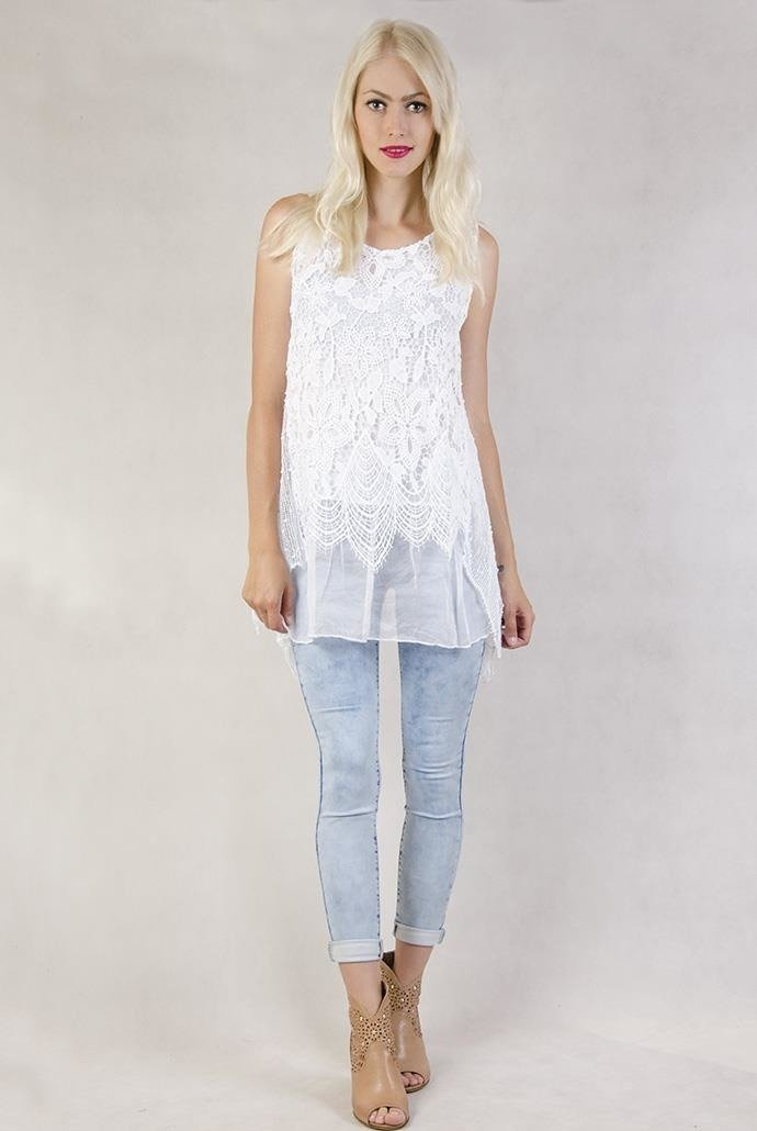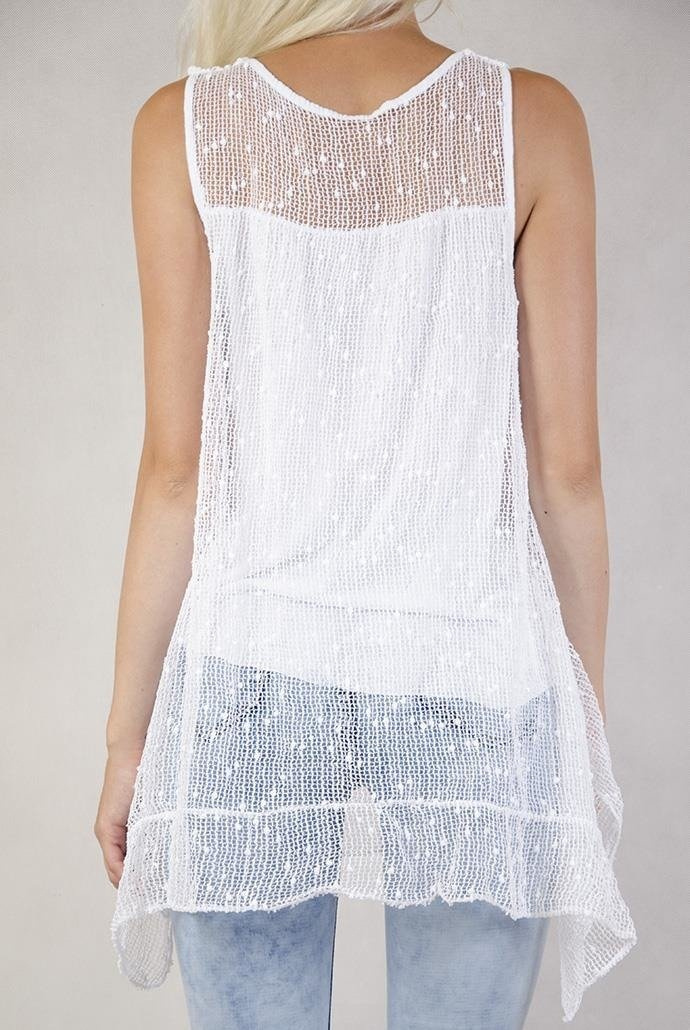Ażurowa bluzka w kwiaty z cekinami na plecach