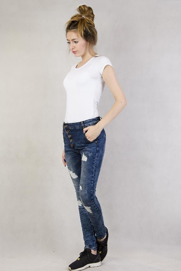 Spodnie jeansowe BAGGY z przetarciami i guzikami na skos