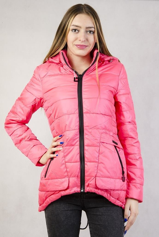 Malinowa, pikowana kurtka z asymetrycznym dołem, ściągana z tyłu