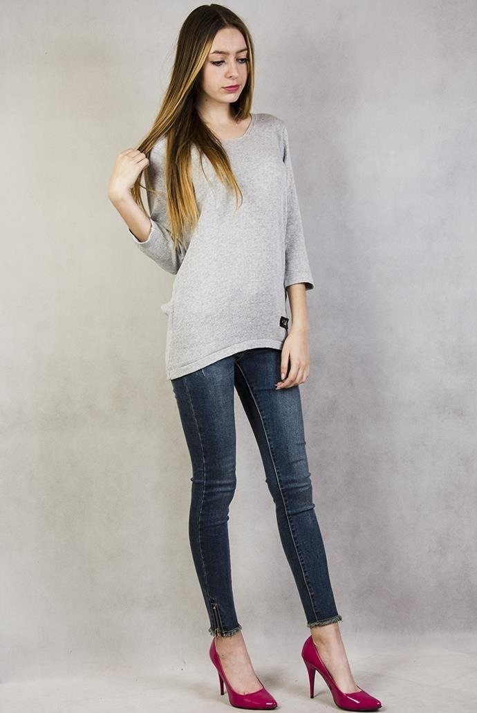 Szary sweterek z wstążką na plecach, rękaw 7/8