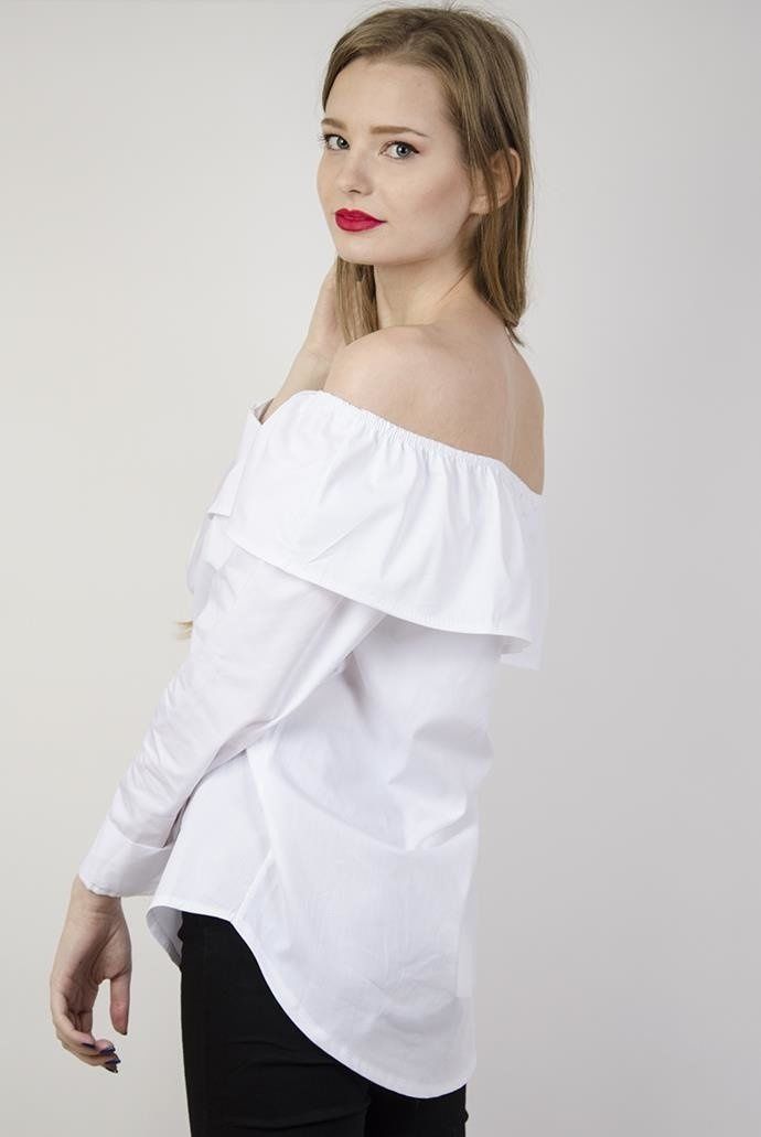 Koszula błękitna asymetryczna z hiszpańskim dekoltem, posiada guziki przy rękawach