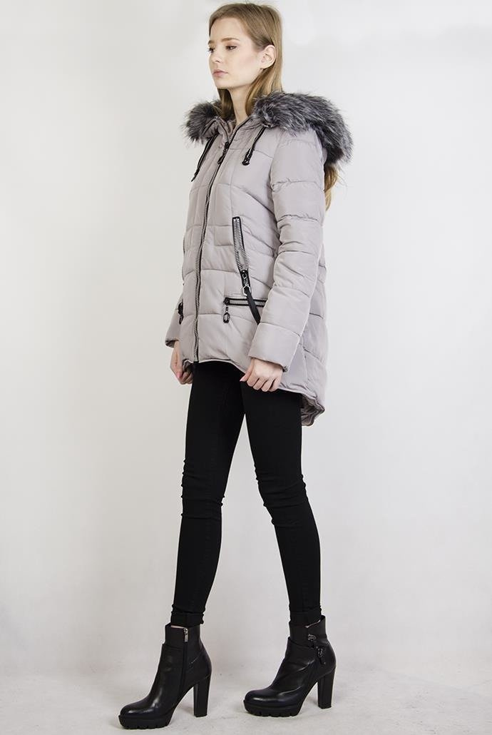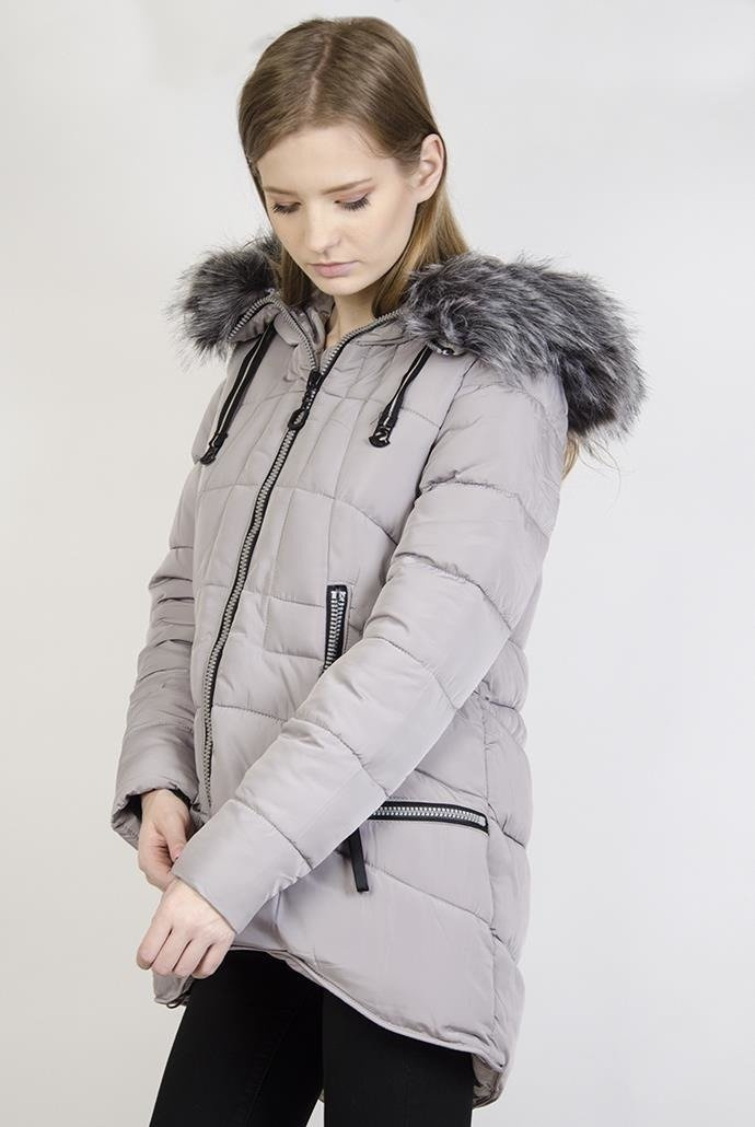 Ocieplana szara asymetryczna kurtka