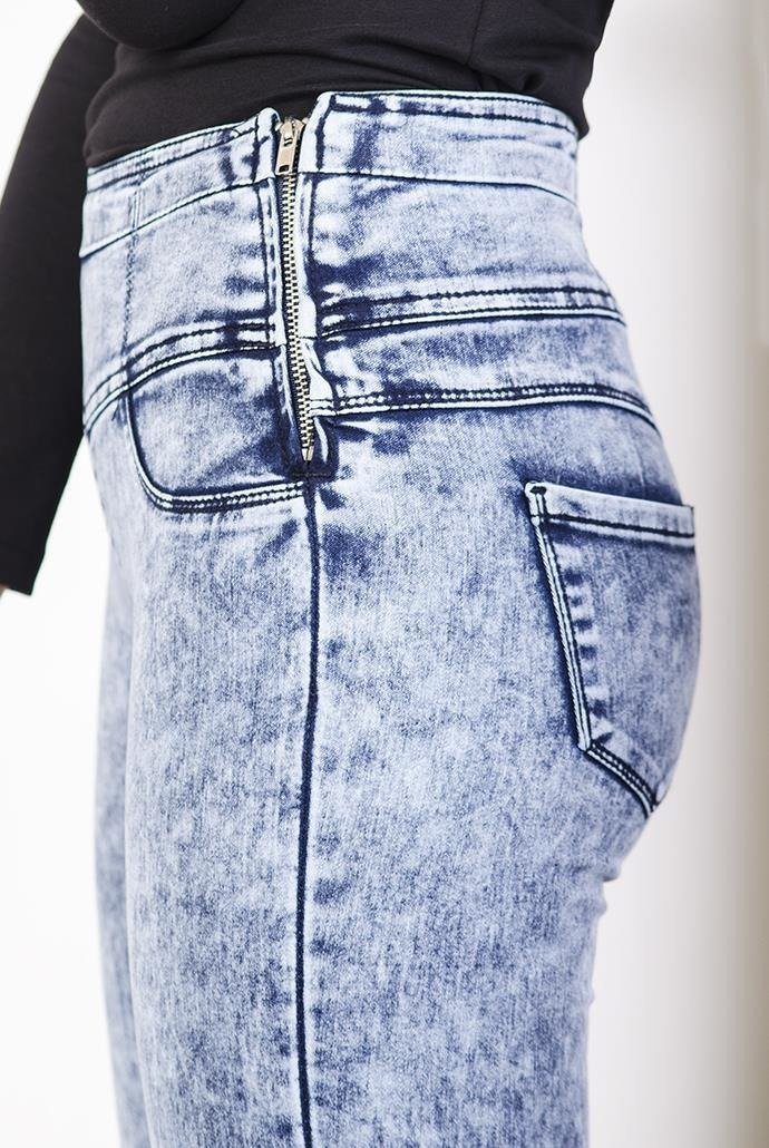 Jasne spodnie skinny jeans z zamkiem z boku, posiadają szeroki pas.