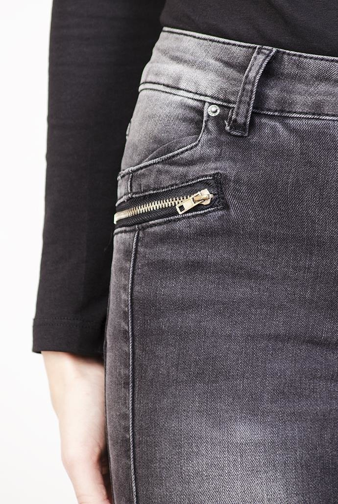 Szare spodnie rurki jeansowe z zamkami i przeszyciami