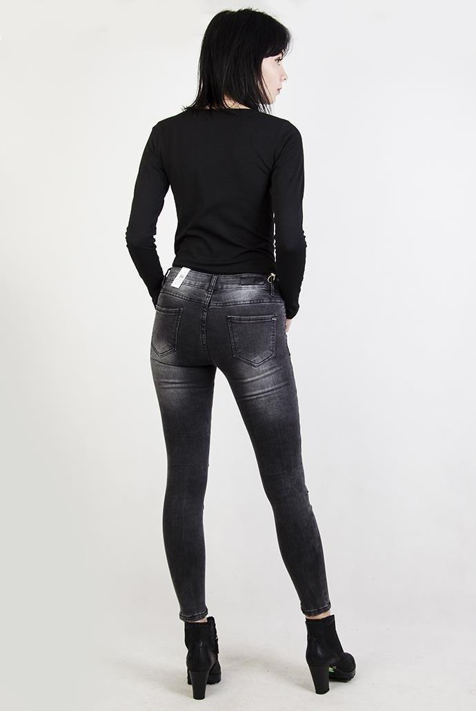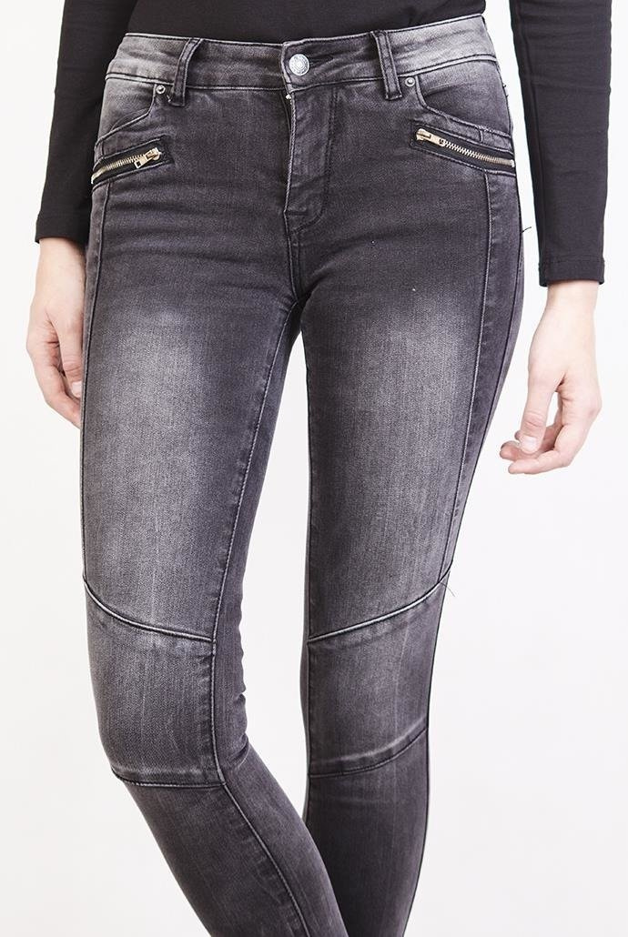 Szare spodnie rurki jeansowe z zamkami i przeszyciami.