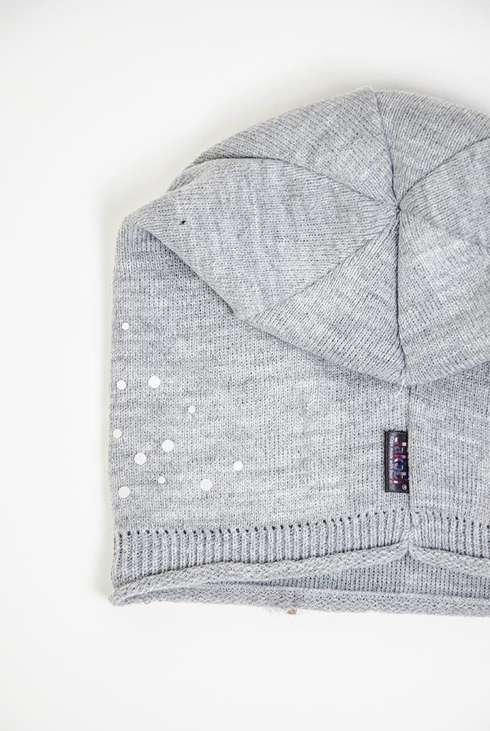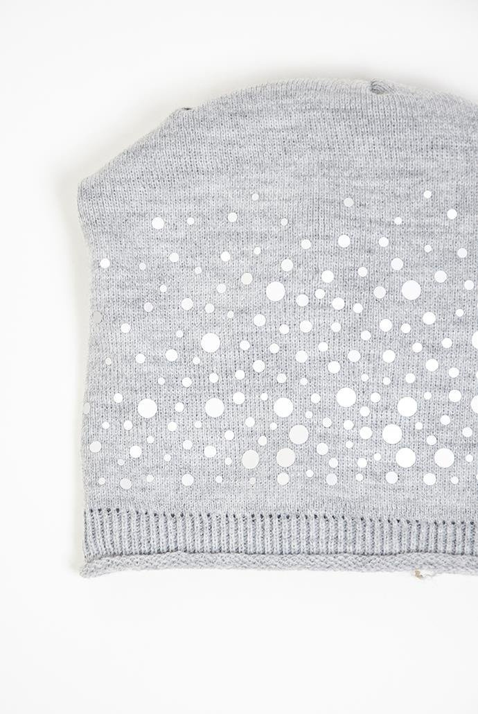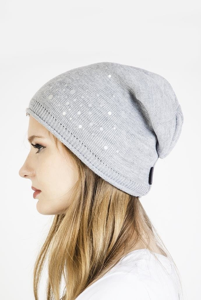 Jasnoszara czapka ze srebrnymi kropkami