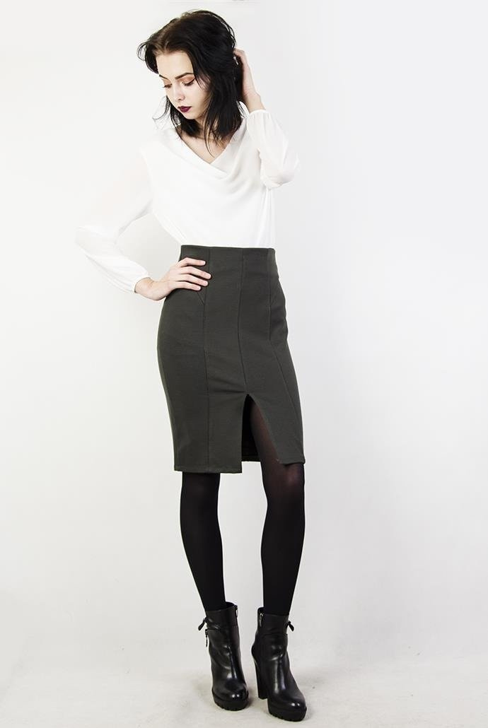 Zielona spódniczka ołówkowa z przeszyciami i wycięciem
