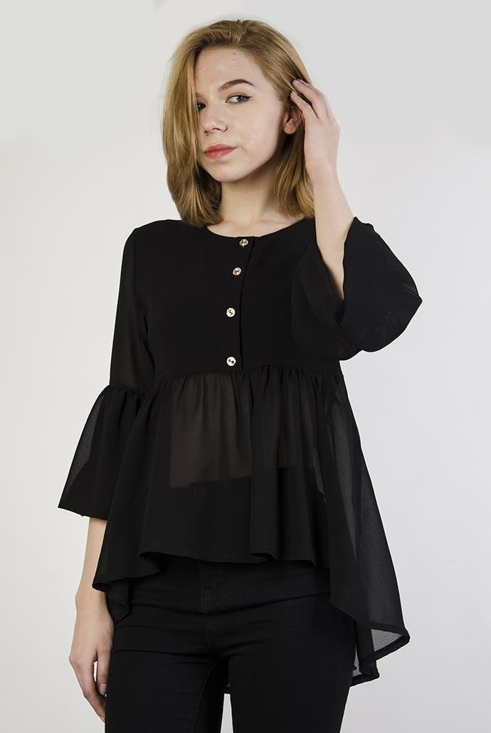 Czarna bluzka z siateczkowym odcięciem pod biustem