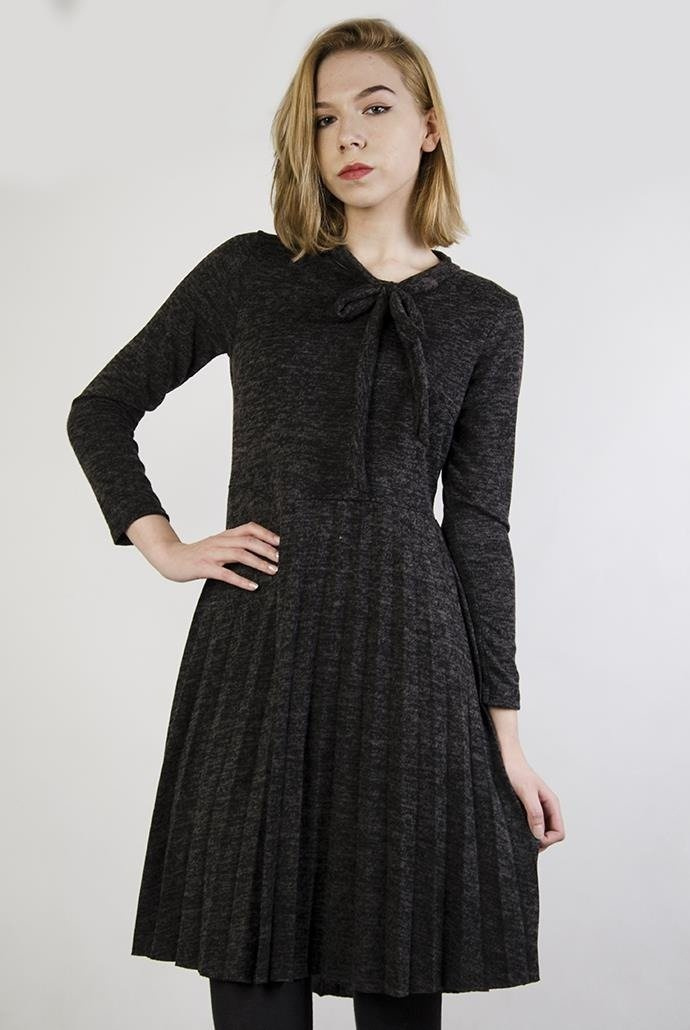 Ciemnoszara sukienka z wiązaną kokardą przy szyi