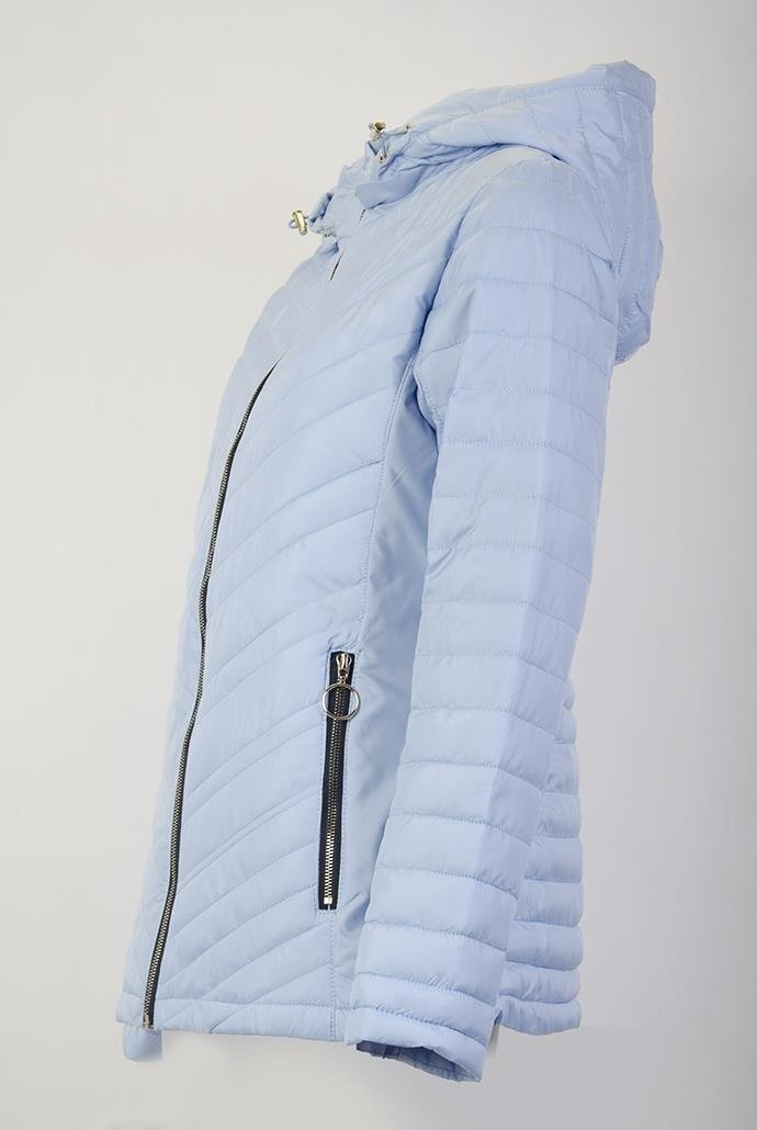 (DUŻE ROZMIARY) Błękitna kurtka pikowana z odpinanym kapturem.