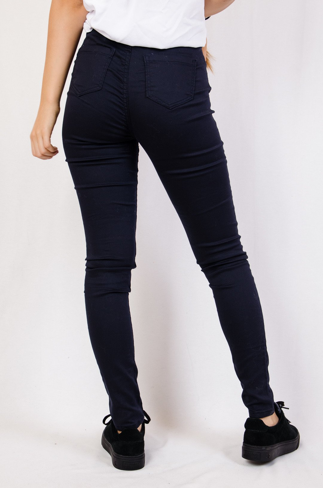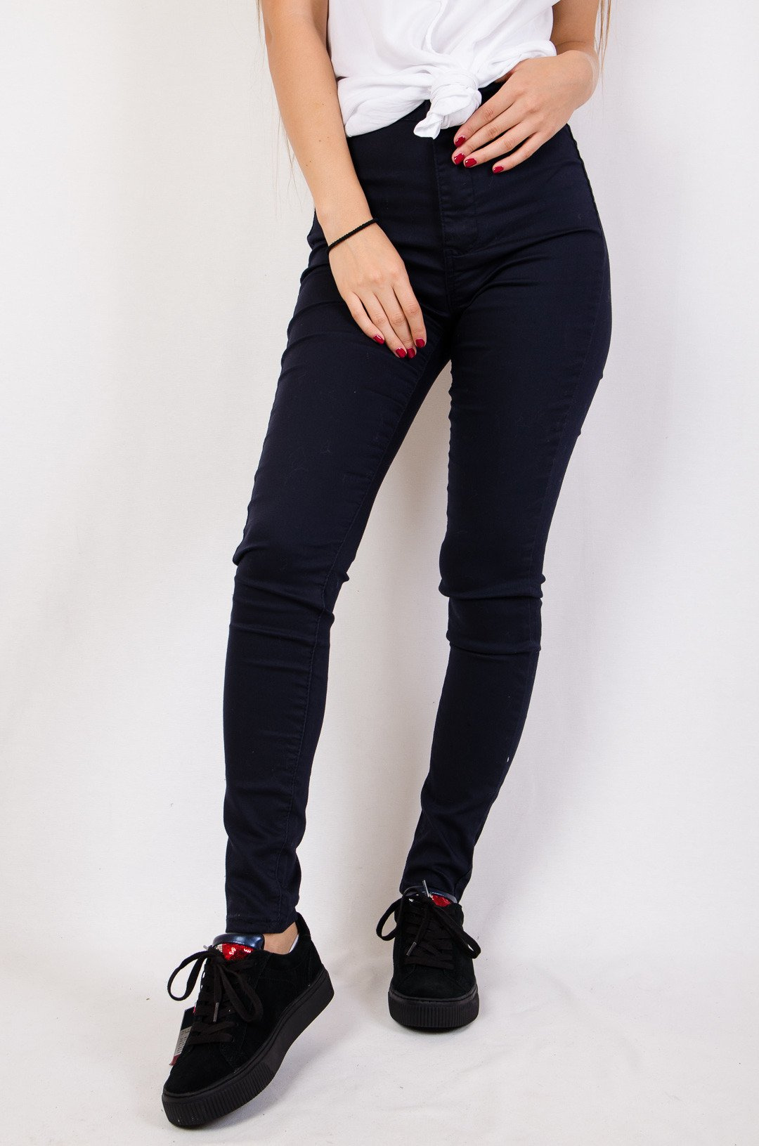 Granatowe spodnie skinny jeans z wysokim stanem.