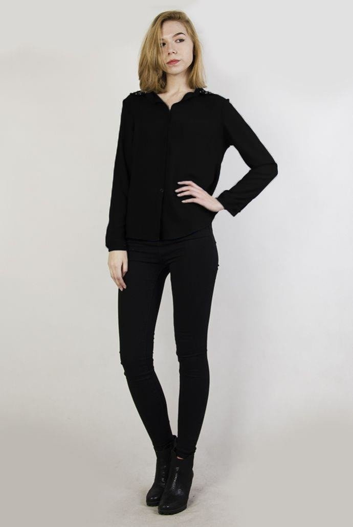 Asymetryczna czarna koszula z ćwiekami przy kołnierzu