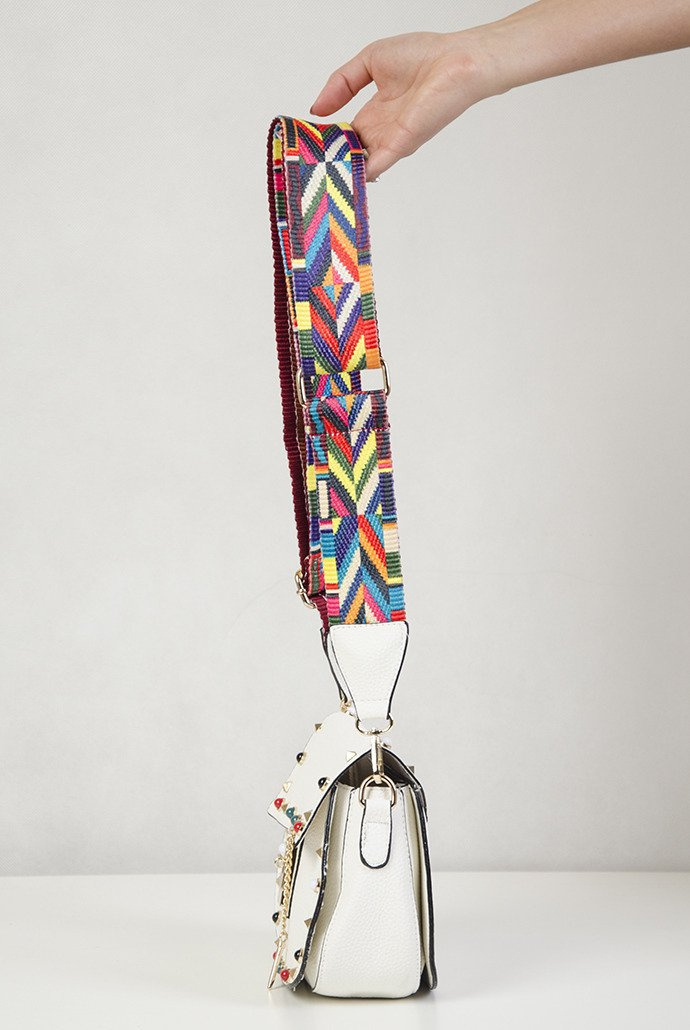 Biała torebka z kolorowym paskiem