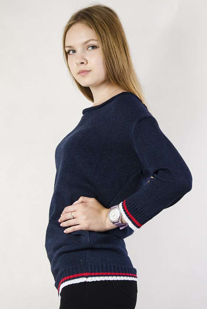 Granatowy sweterek z wiązaniem z tyłu