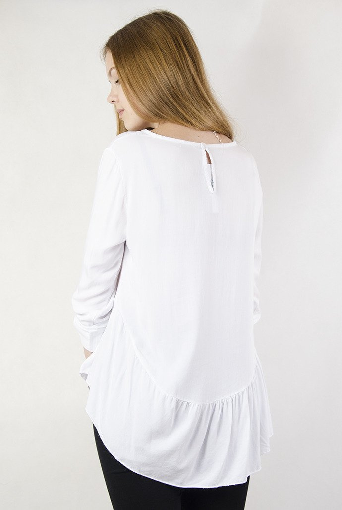 Biała, gładka bluzka z odcięciem na dole. Posiada możliwość zapięcia rękawa.