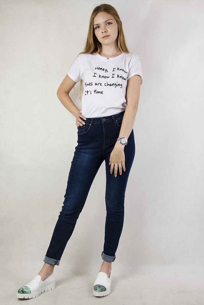 (ROZMIARY M-4XL) Spodnie jeansowe z wysokim stanem. Nogawka na zdjęciu jest zawinięta- można ją odwinąć.