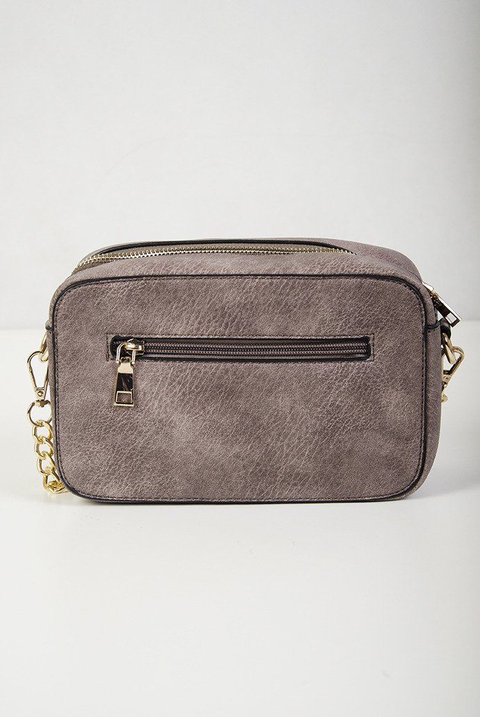 Brązowa, mała torebka z łańcuszkiem połączonym z regulowanym paskiem. W niej schowasz najpotrzebniejsze przedmioty, a przy tym będziesz wyglądać świetnie! W środku jedna główna komora bez przegródek.