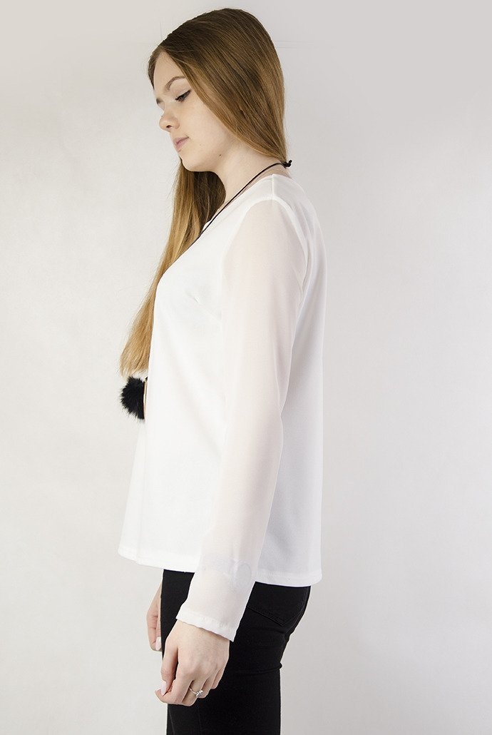 Biała zwiewna bluzka z prześwitujacymi rękawami