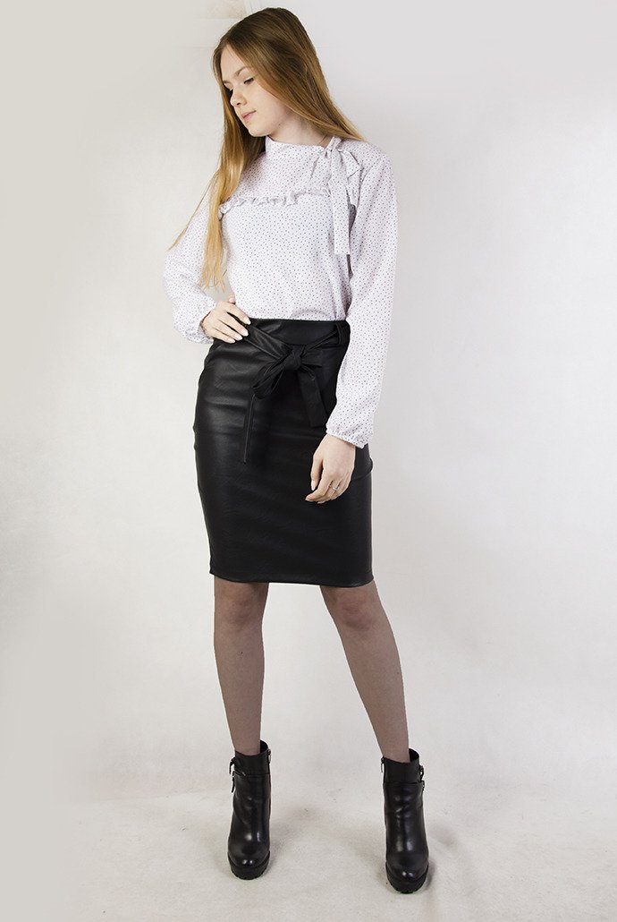 Czarna ołówkowa spódnica z kieszeniami oraz paskiem