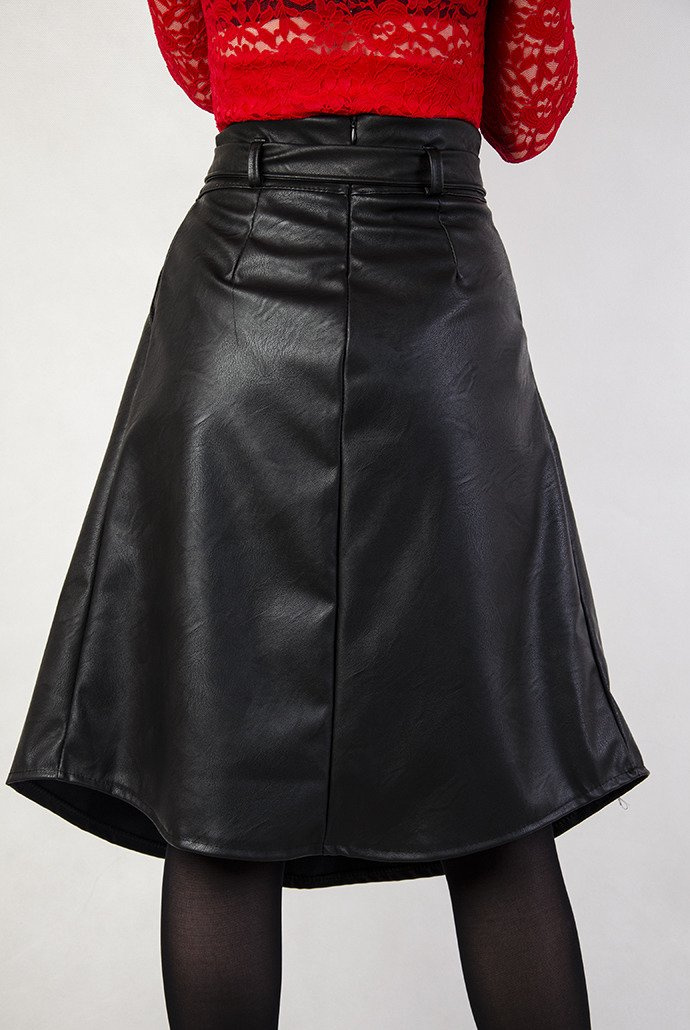 Czarna rozkloszowana skórkowa spódnica za kolano