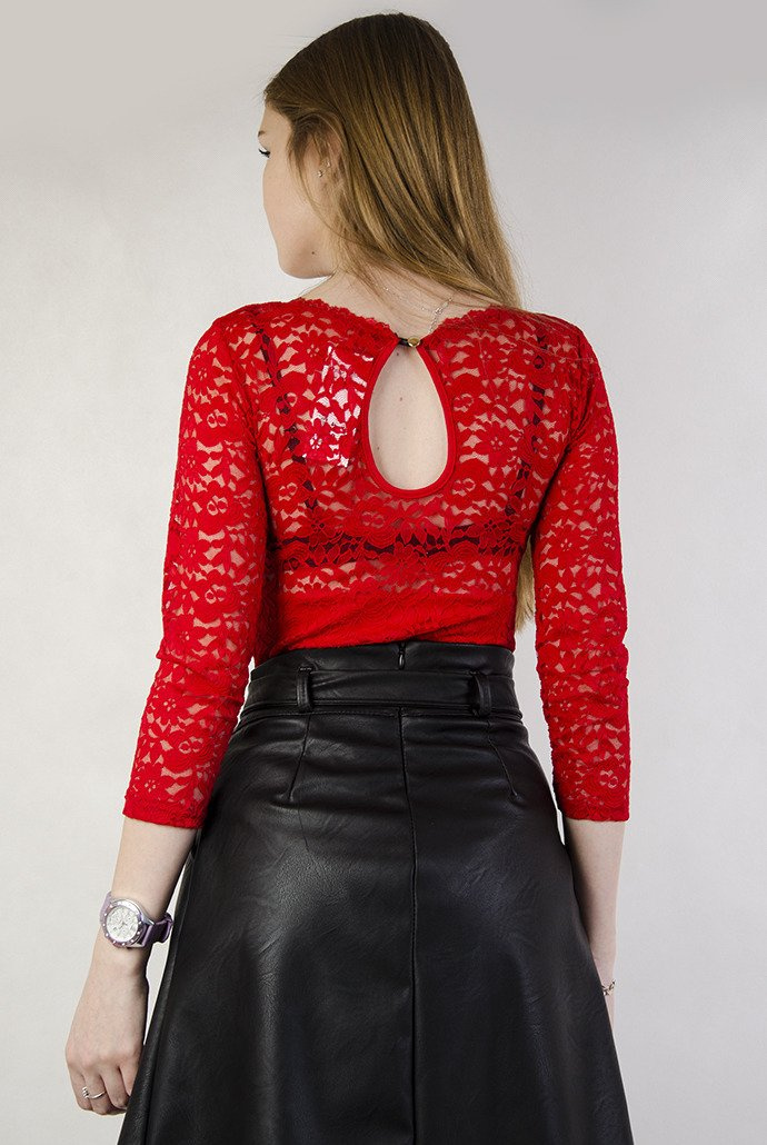 Czerwone koronkowe body z wycięciem na plecach