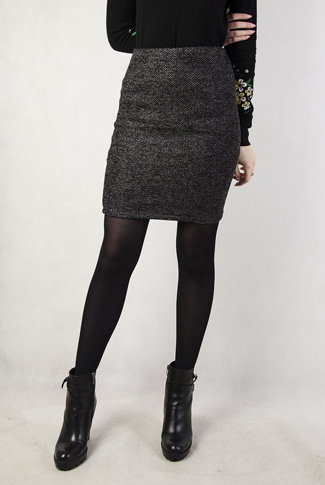 Czarna przylegająca spódnica przeszywana srebrną nicią