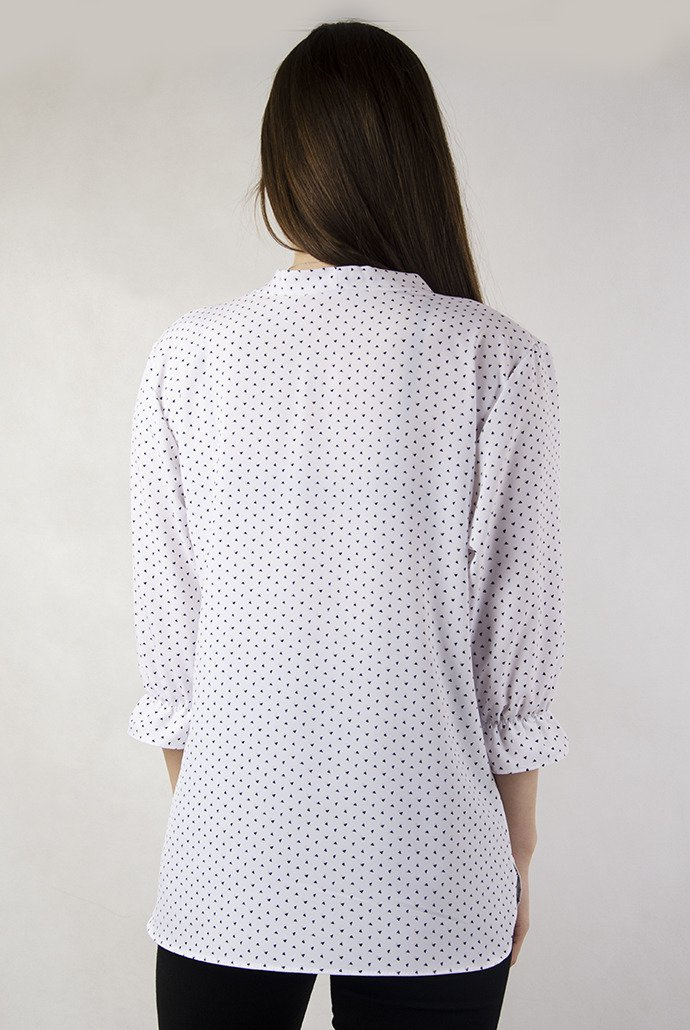Biała bluzka w trójkąty z wiązaniem przy szyi