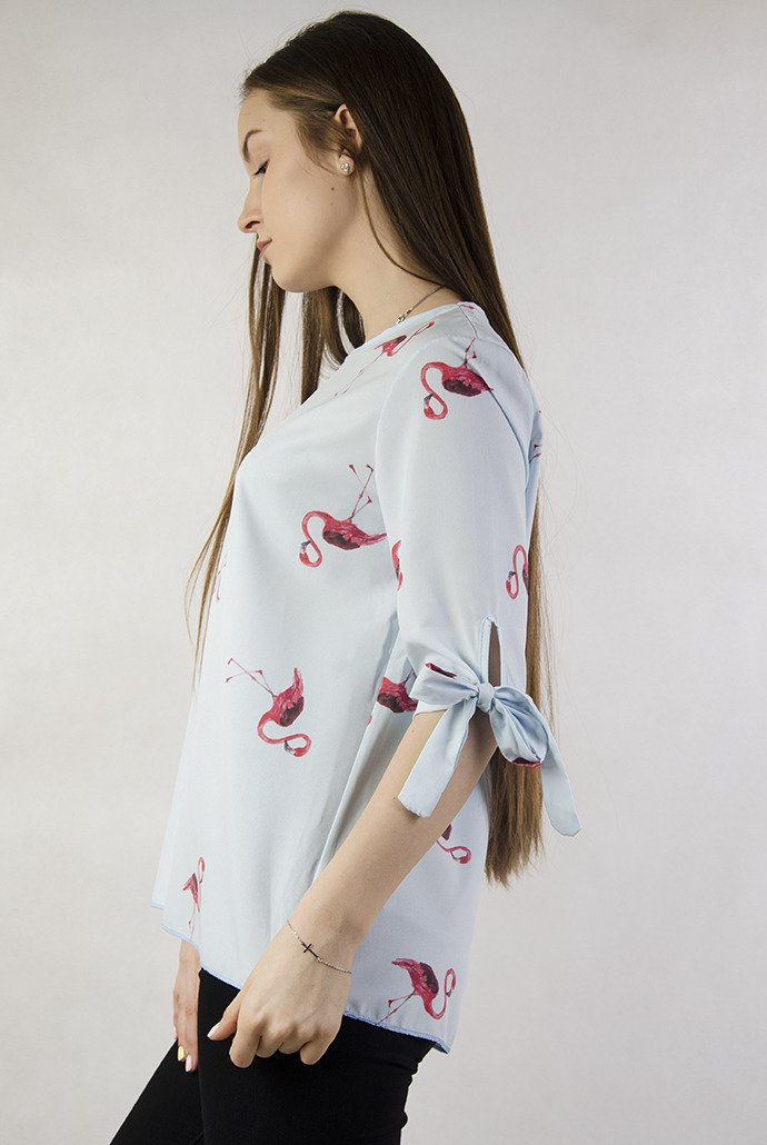 Zwiewna niebieska bluzka w flamingi