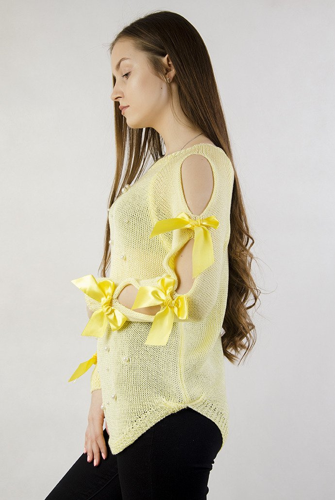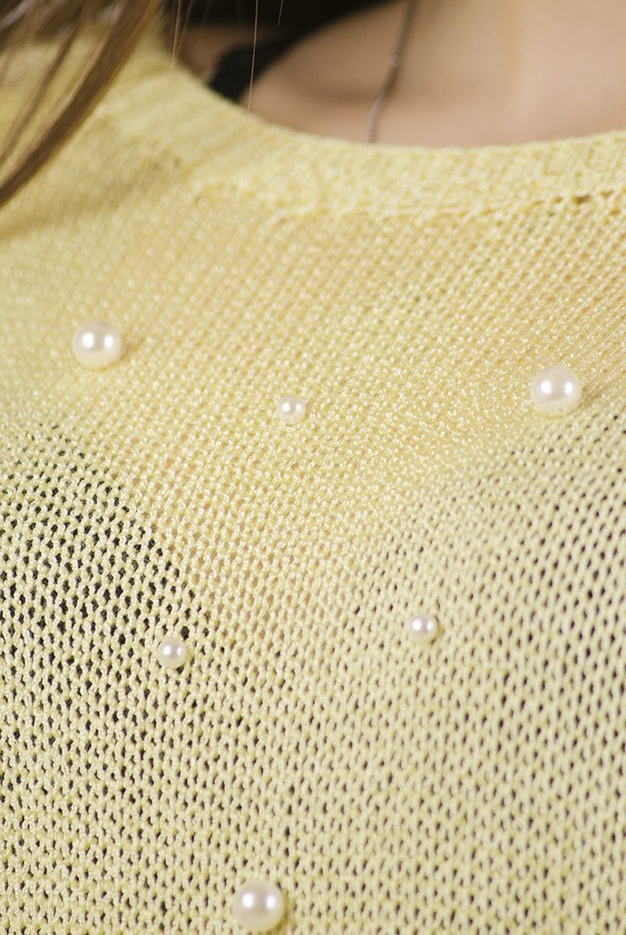 Żółty sweter z koralikami