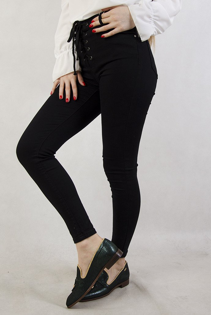 Czarne spodnie z wiązaniem z przodu