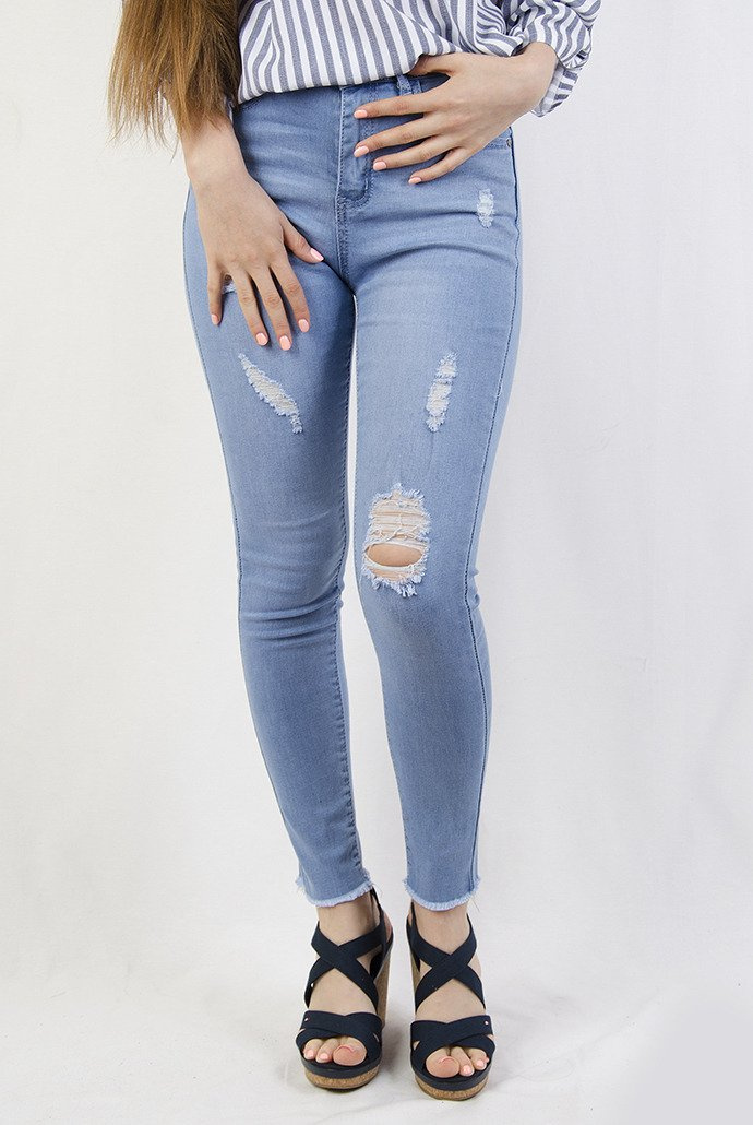 Jasne spodnie jeansowe z przetarciami