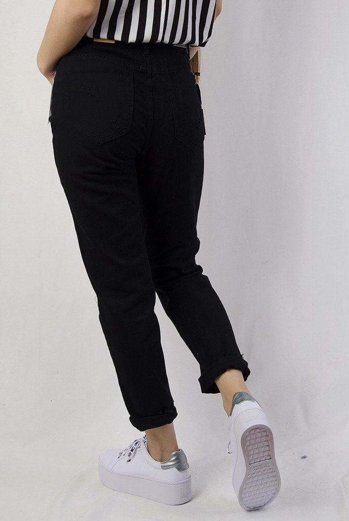 Czarne spodnie boyfriend z szarpaniami przy nogawce