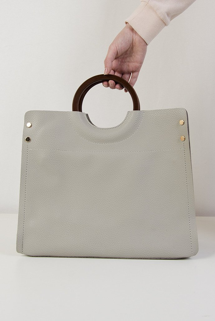 Szara torebka z drewnianą rączką