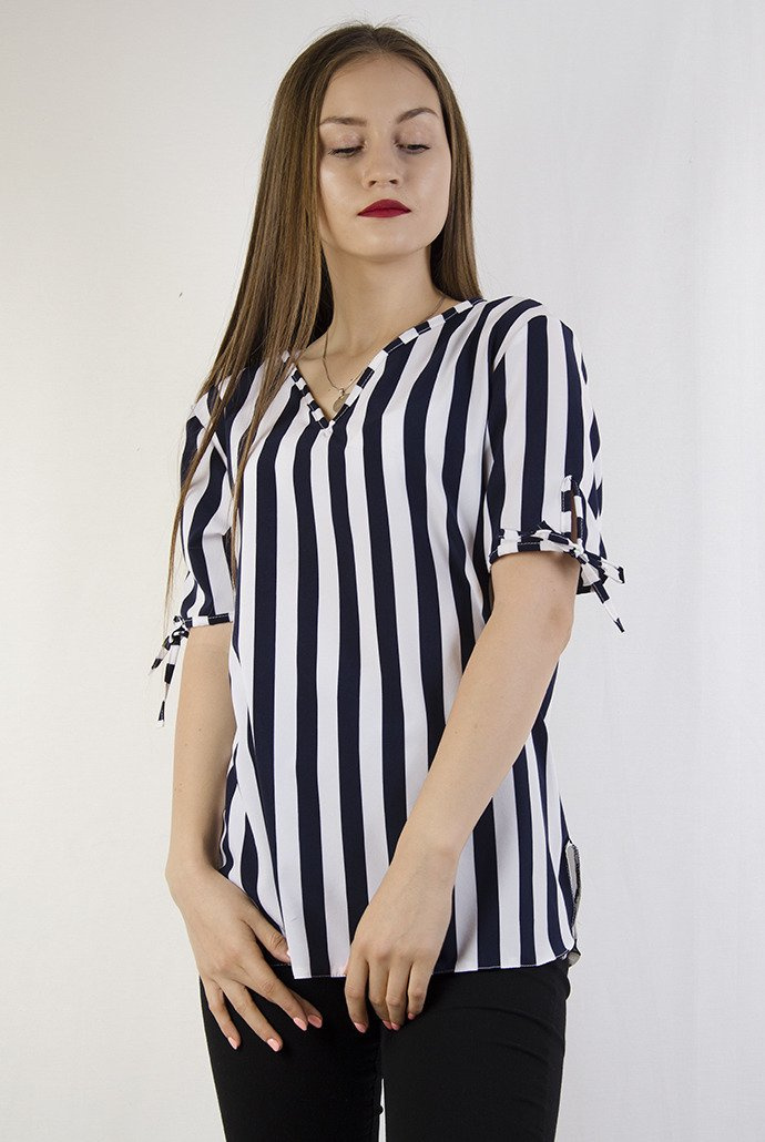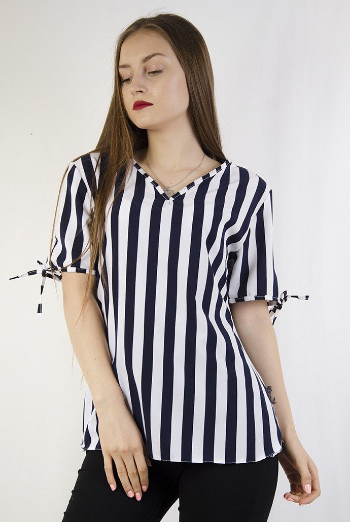 Bluzka w biało granatowe pasy z wycięciem na plecach