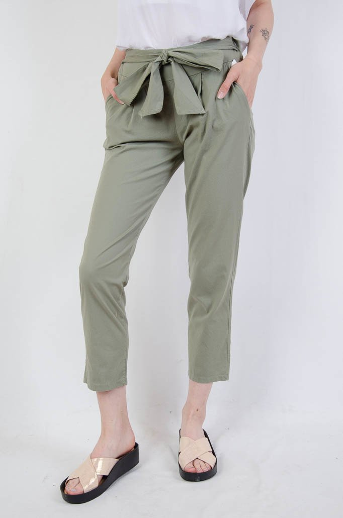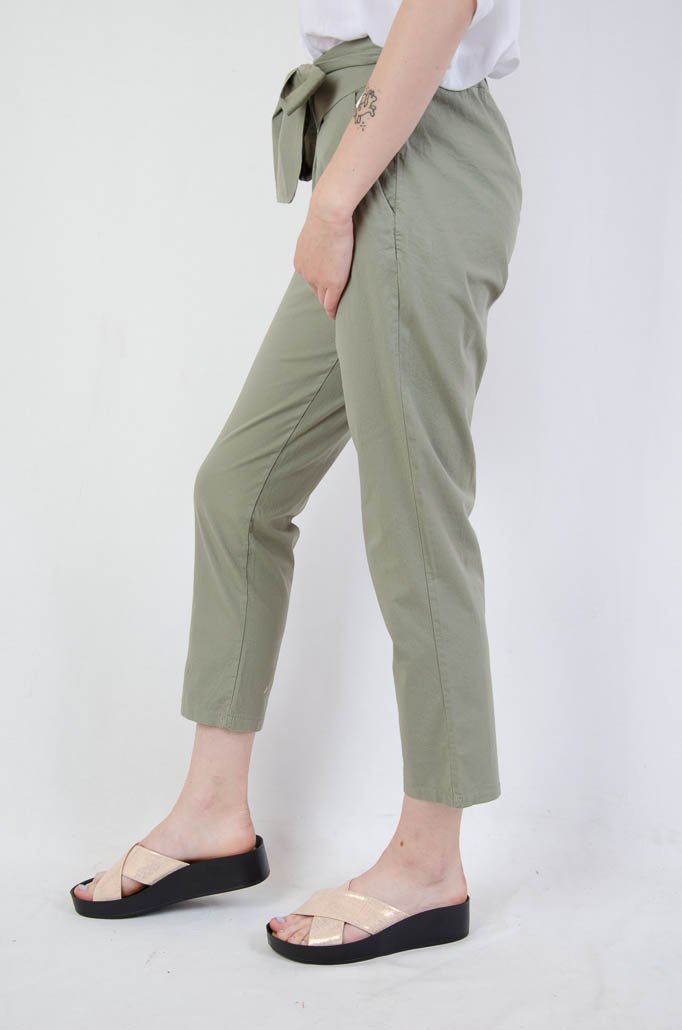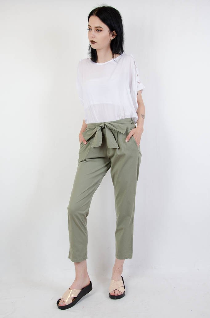 Zielone materiałowe spodnie z wiązaniem w pasie