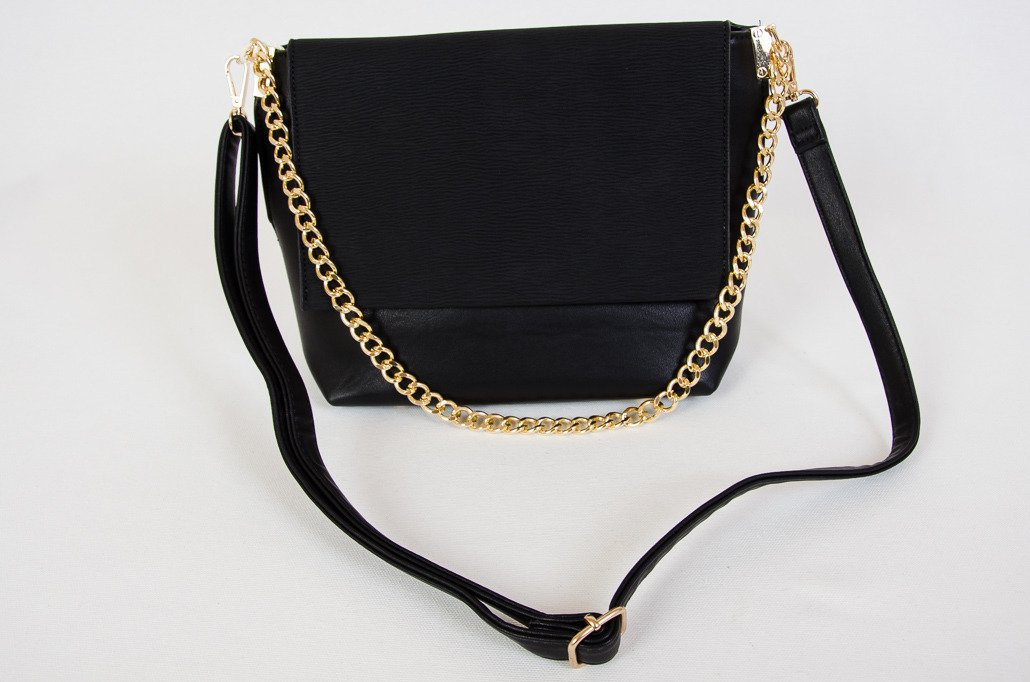 Czarna kopertowa torebka na złotym łańcuszku