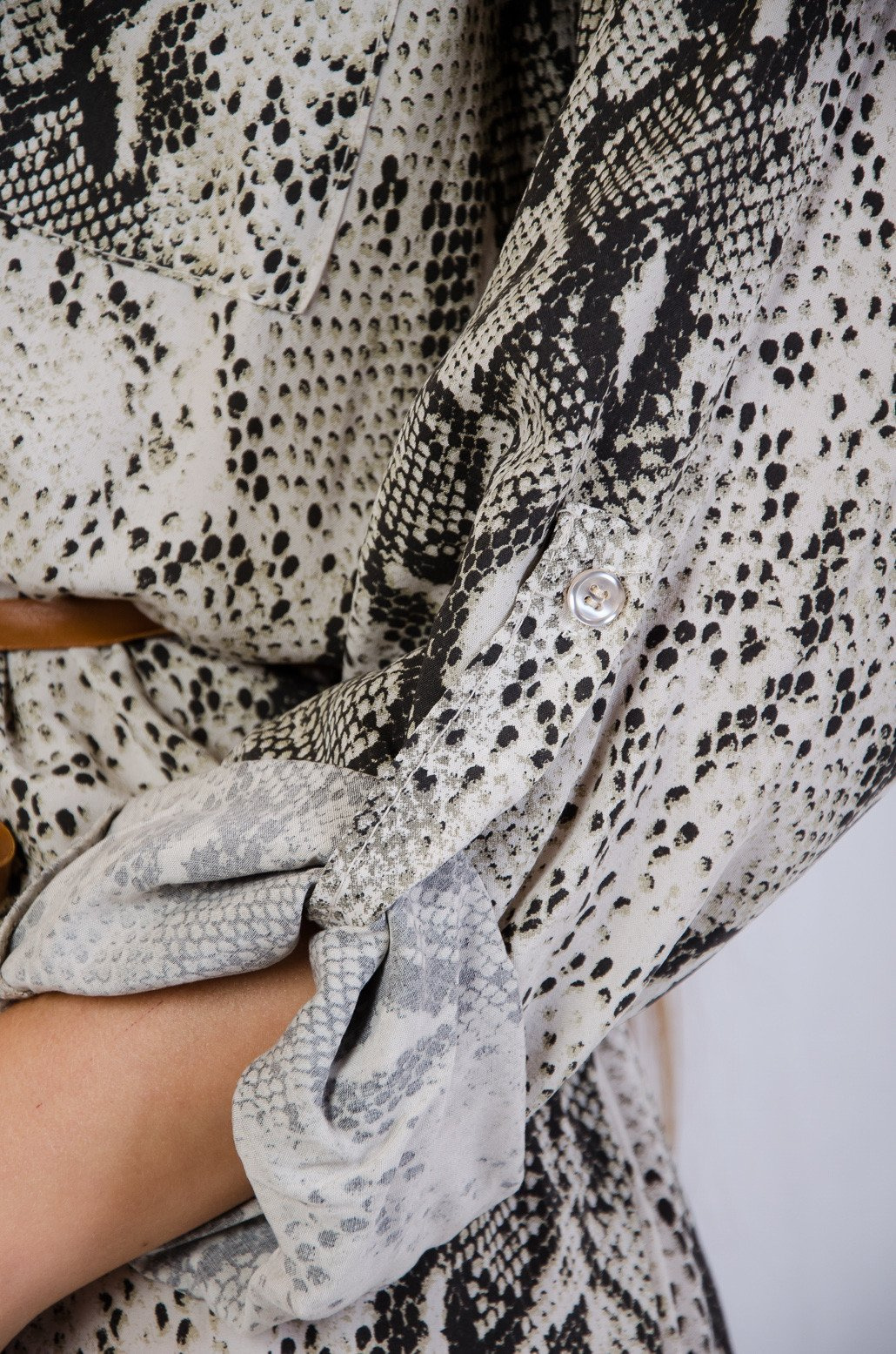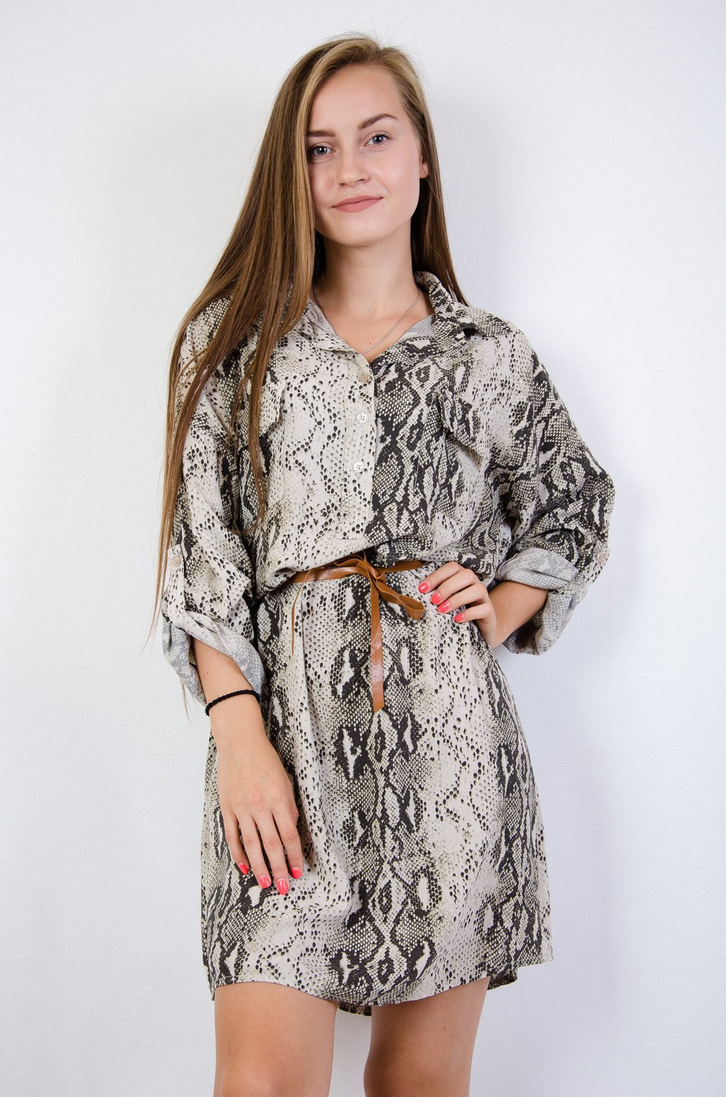 Sukienka imitacja skóry węża wiązana w pasie