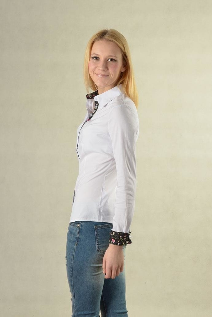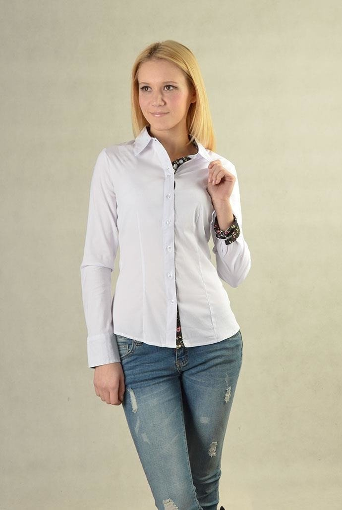 Elegancka koszula, zapinana na guziczki. Mankiety w kwiaty